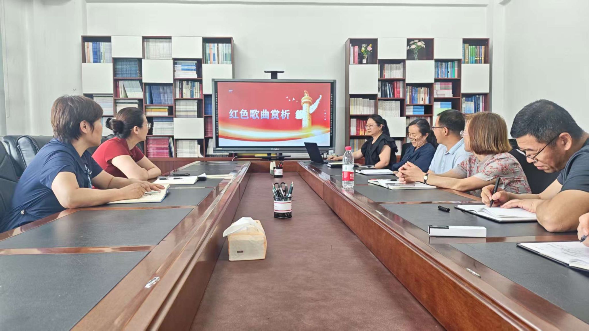 6月25日,评估中心在主楼408会议室持续开展“素质能力提升业务大讲堂”活动。本次活动由教学质量监控科科长韩博担任主讲,以红色歌曲赏析为切入点,带领全体工作人员深入感悟经典旋律背后的精神力量。