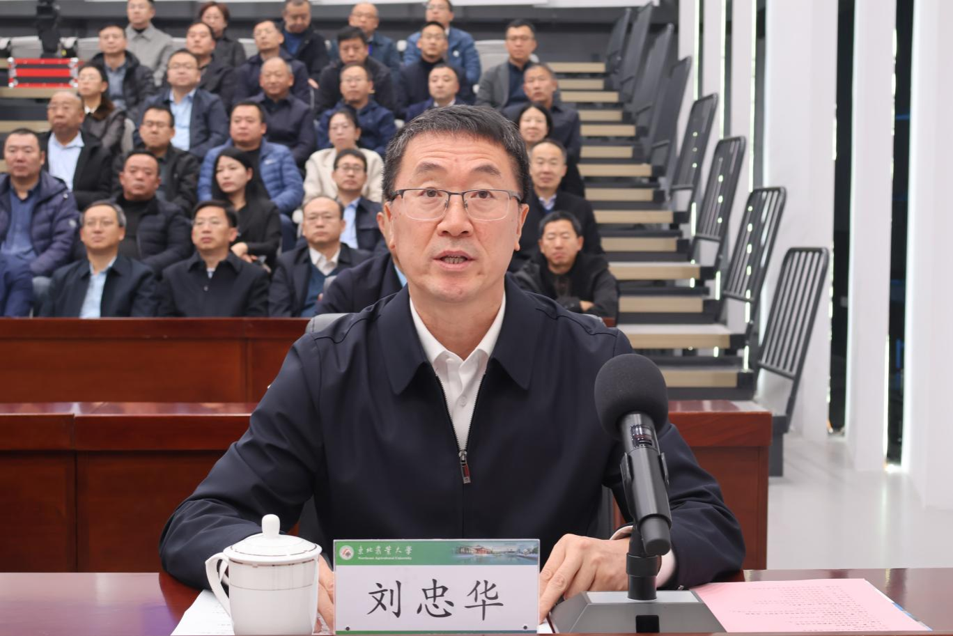 11月3日上午,东北农业大学本科教育教学审核评估启动会在成艺楼201智慧教室召开。会议采取线上线下相结合的形式进行。审核评估专家组组长、西北农林科技大学校长吴普特教授,专家组副组长、佳木斯大学党委书记武瑞教授及专家组全体成员线上参加会议,黑龙江省教育厅总督学刘兆国、教育督导室主任黄冬艳、一级主任科员马云艳,东北农业大学校长刘竹青等全体在校校领导,各职能部处主要负责人,各学院党委书记、院长参加会议。会议由副校长刘忠华主持。