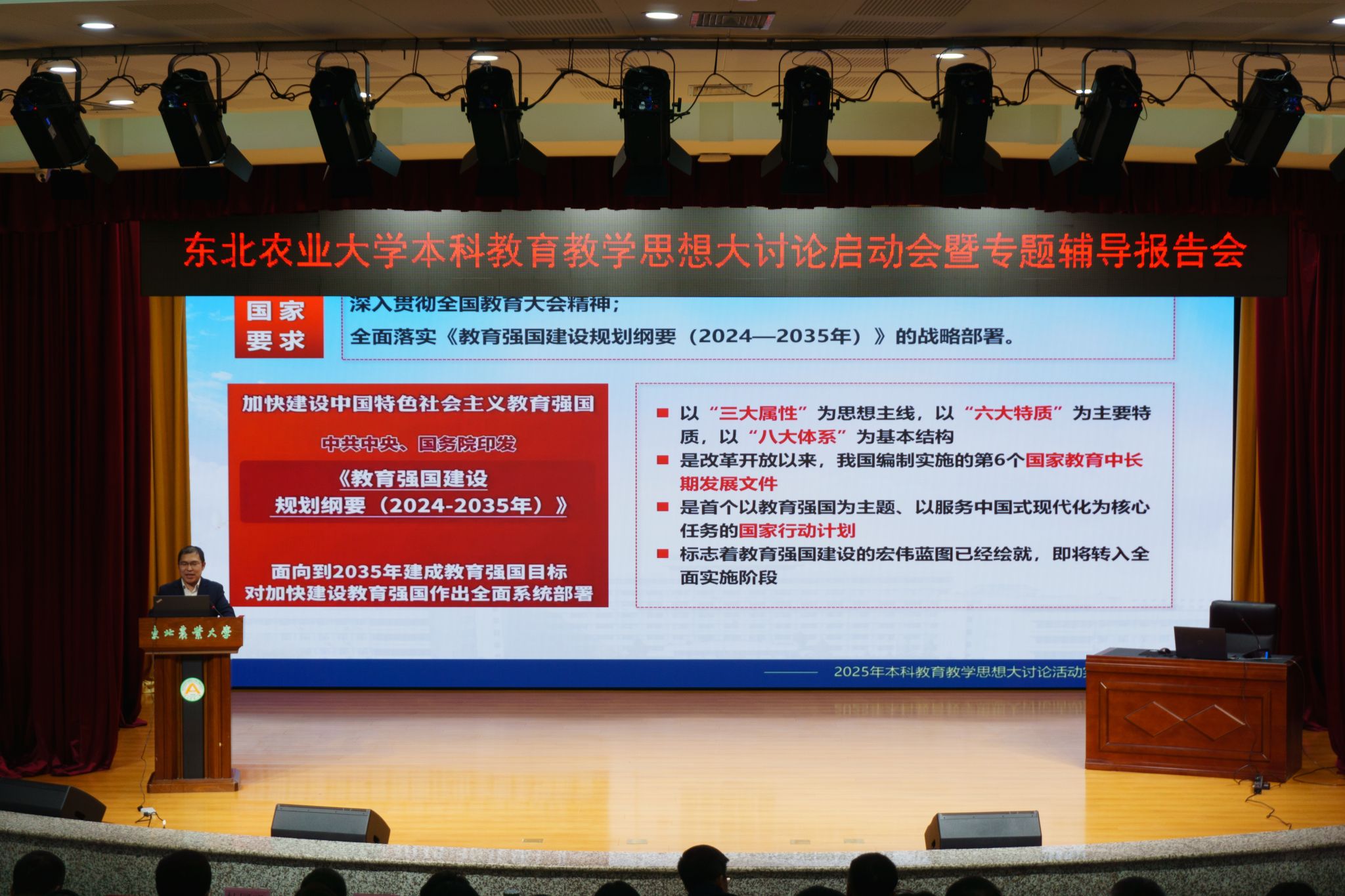 为深入贯彻全国教育大会精神,全面落实《教育强国建设规划纲要(2024—2035年)》战略部署,切实将立德树人根本任务落到实处,扎实推进审核评估整改工作,进一步构筑高质量育人体系,打造东农人才培养特色品牌,4月23日下午,我校正式启动以“五自引领、四新变革、三全育人,全员共筑新时代东农本科教育品牌”为主题的教育教学思想大讨论。