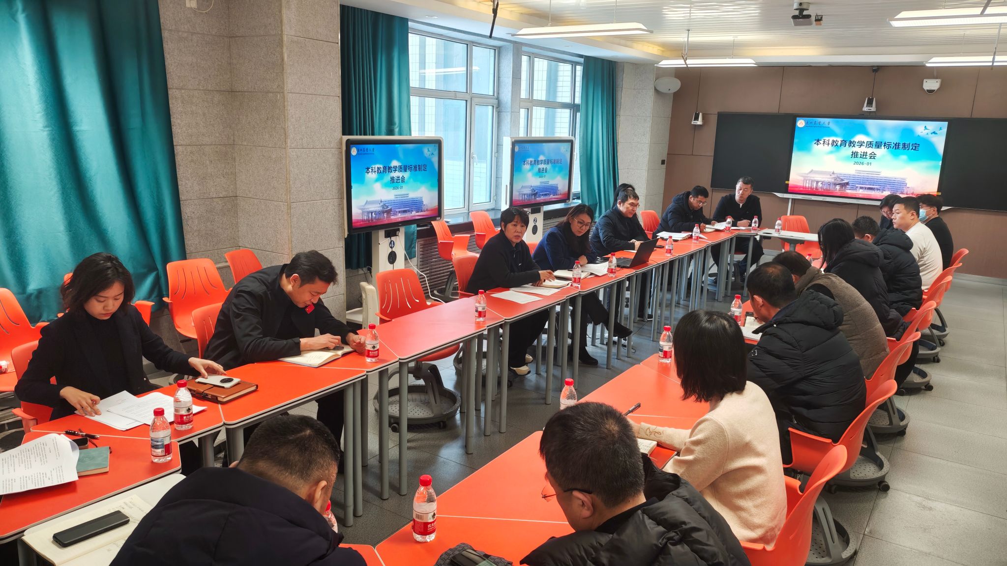 为加快本科教育教学质量标准体系落地,细化编写规范,凝聚部门合力,1月15日下午,我校在主楼226教室召开本科教育教学质量标准编制工作推进会。学校办公室、宣传部、学生工作部、团委、教务处、科学技术处、发展规划与学科建设处、人事处、财务处、国有资产管理处、招生就业处、后勤管理处、实验室管理处、国际交流合作处、现代教育技术中心、图书馆、实验实习与示范中心、社会合作与成果转化中心、马克思主义学院牵头领导及具体工作人员参会,会议由高教研究与教学质量评估中心主任黄嘉鑫主持。