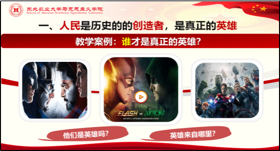 视频播放结束后,教师提出富有启发性的问题,如“你认为我们现在所处的时代与视频中场景有哪些异同?如果没有中国共产党,中国会怎样?”“在刚才视频中你看到的这些人物是真正的英雄吗?谁才是真正的英雄?”引发学生的思考和讨论,从而自然导入新的教学主题。
